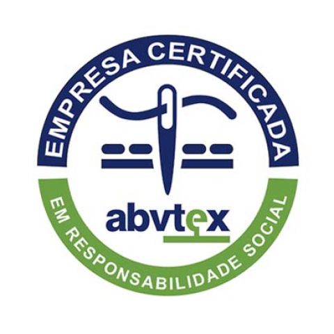 Certificação ABVTEX (Associação Brasileira do Varejo Têxtil) garante que a empresa segue boas práticas trabalhistas e sociais, combatendo o trabalho irregular e promovendo condições dignas para os trabalhadores da indústria da moda.